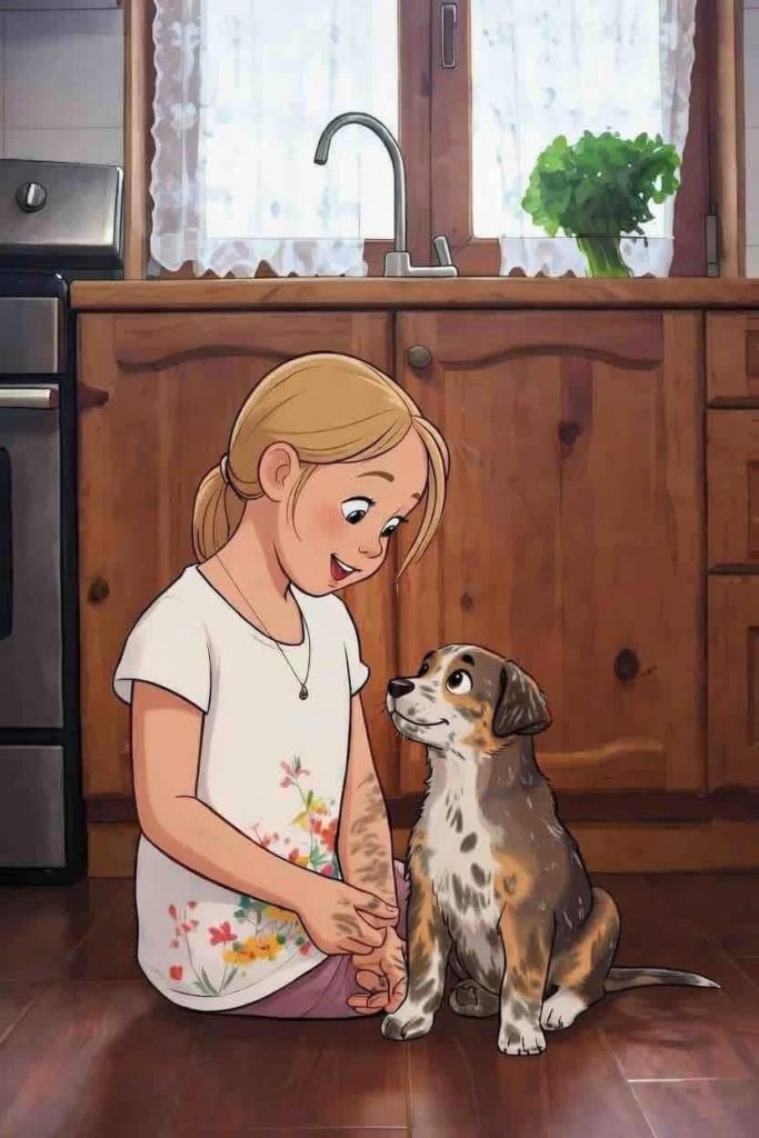 She was supposed to be coloring at the table while Mama chopped onions for soup, but the back door had been left ajar just enough for a small, muddy shadow to slip inside. Laura heard the soft click of claws on the tile, turned, and gasped.