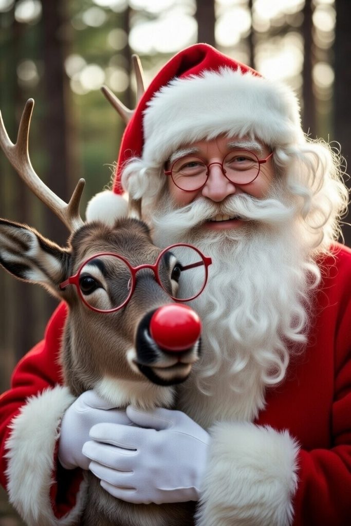 “Well, when they cured me of drinking,” Rudolf said cheerfully, “the red nose just… disappeared. But don’t worry, Santa—I’ve got these red-framed glasses now. Problem solved!”